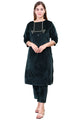 The Camey Women's Velvet Winter Embroidered Corduroy Kurti Set is a perfect choice for the chilly winter season. Crafted from luxurious velvet and corduroy fabric, this kurti set offers warmth and comfort while adding a touch of elegance to your ensemble. The long sleeves provide additional coverage and insulation against the cold. The intricate embroidery work on the kurti adds a touch of traditional charm, making it a standout piece. This kurti set is versatile and can be dressed up or down, making it suitable for various occasions. Whether you're attending a festive gathering or running errands, this kurti set will keep you cosy and stylish. The velvet and corduroy fabrics are not only warm but also soft against the skin, ensuring all-day comfort. With its timeless design and superior quality, this kurti set is a must-have addition to your winter wardrobe.