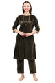 Women's Velvet Winter Embroidered Corduroy Kurti Set, Long Sleeves (Maroon)