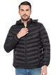 Black, Airforce, Grey solid puffer jacket, has a stand collar, 2 pockets ,has a snap button closure,has a hood, long sleeves, curved hemline for heavy winter