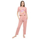 Nightwear crop cord Set for Women|Printed Top and Pajama|Viscose Crop T-Shirt and Pants with 2 side pockets
