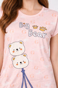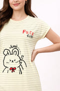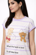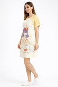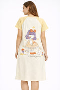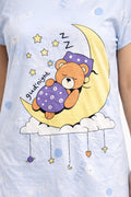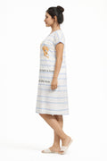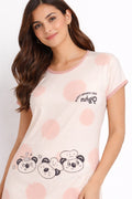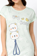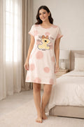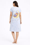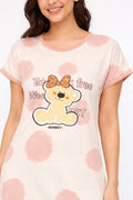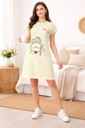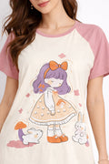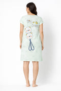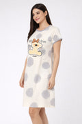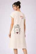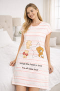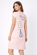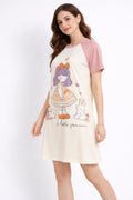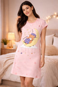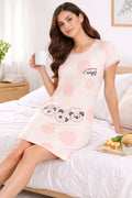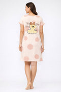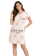 DESIGN: Comfortable short sleeve nightgown featuring a charming printed pattern in soft green,peach,sky,pink,purple and cream colours with cute prints