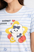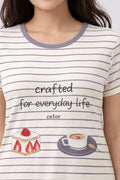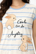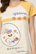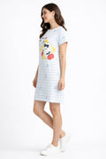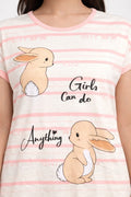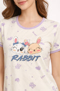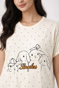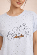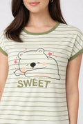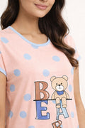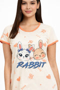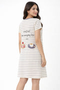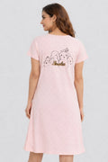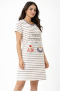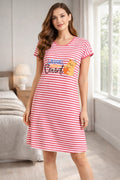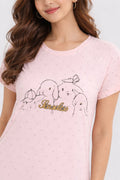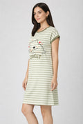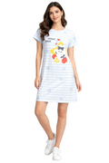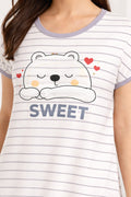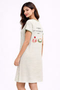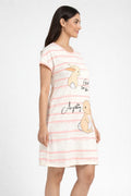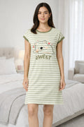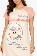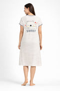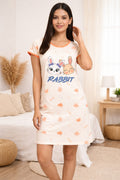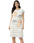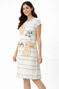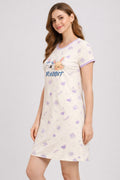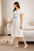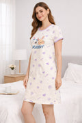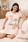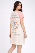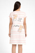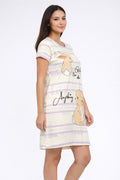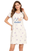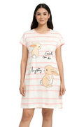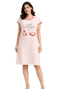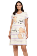 DESIGN: Comfortable short sleeve nightgown featuring a charming printed pattern in soft green,peach,sky,pink,purple and cream colours with cute prints