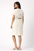 STYLE FEATURES: Round neckline, short rolled-up sleeves, and a relaxed knee-length cut for unrestricted movement